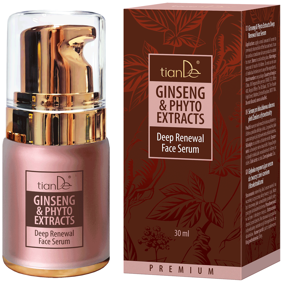 Głęboko regenerujące serum do twarzy z żeń-szeniem i fitoekstraktami – to silny naturalny koncentrat o działaniu adaptogennym i antyoksydacyjnym. Produkt od TianDe: